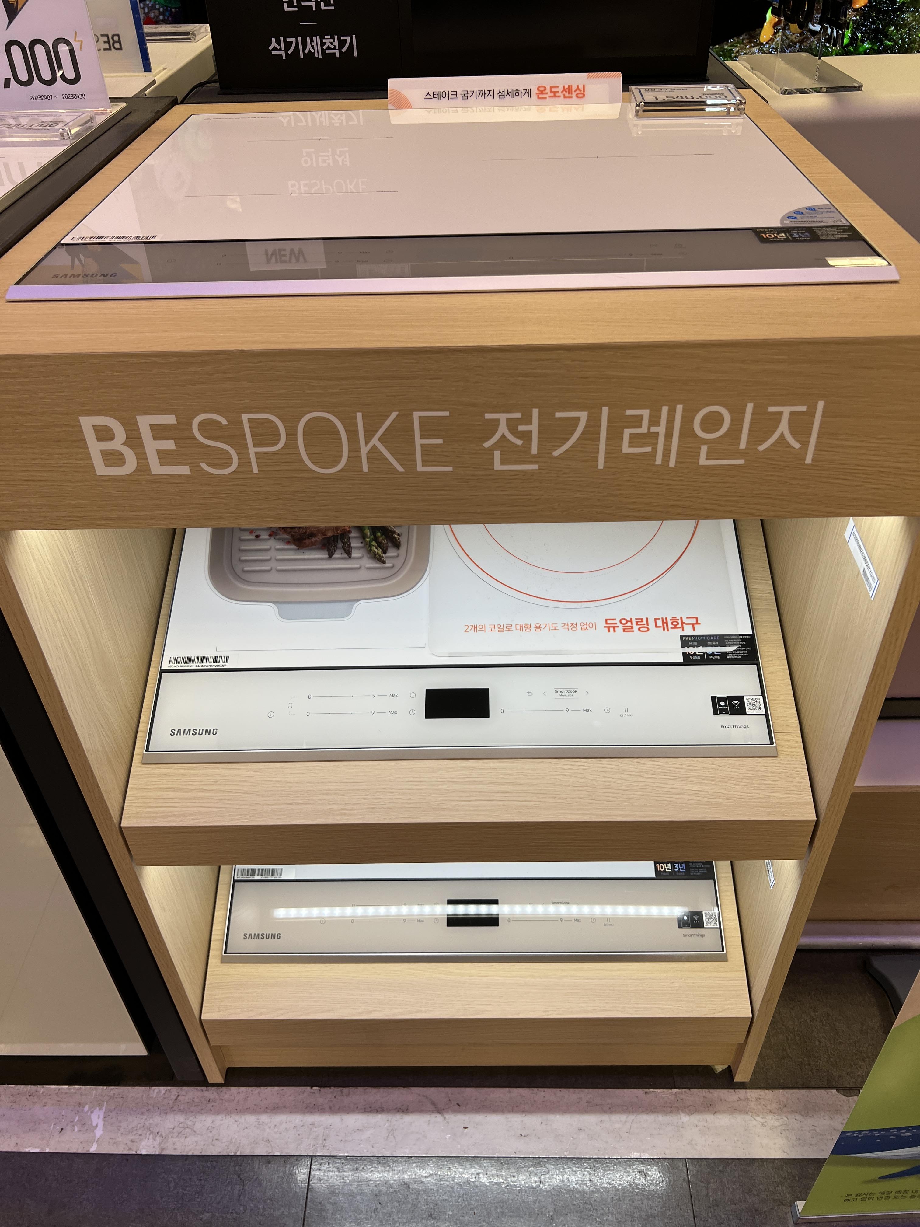 마지막으로는 디자인입니다. 제가 찍은 삼성 BESPOKE 전기레인지인데요 예쁘지 않나요? 고급스러운 외관 덕분에 주방 인테리어 소품으로도 손색이 없고 빌트인 설치 또한 가능합니다.